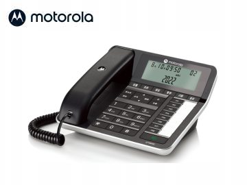摩托羅拉CT360C電話機,支持黑白屏,顯示屏對比度5級可調,35個按鍵,屏幕待機顯示 日期/時間,電話雙接口,免電池,8組單鍵快捷撥號,10組雙 鍵快捷撥號,來電顯示模式為FSK/DTMF